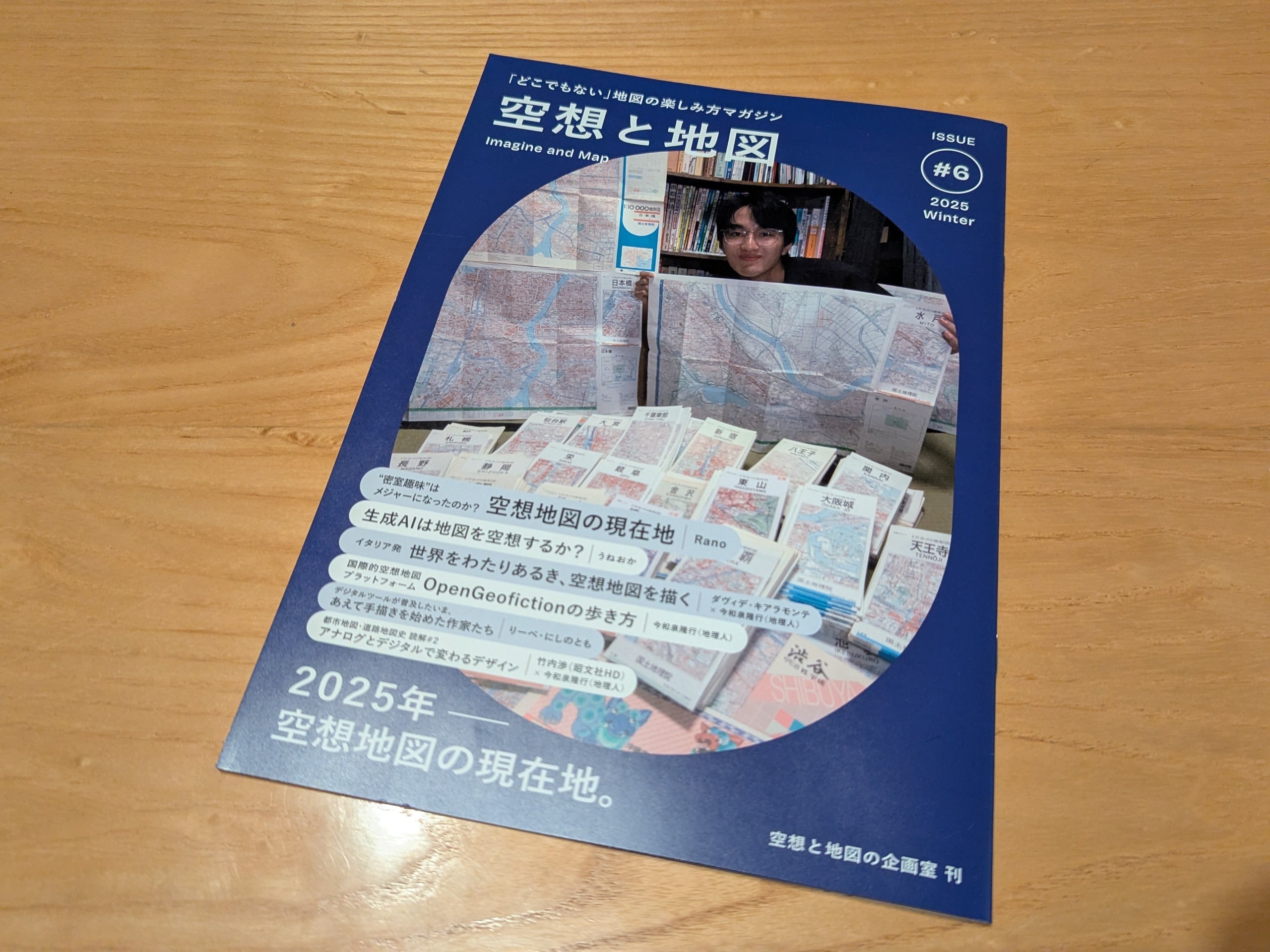 空想地図趣味が「密室趣味」を脱し、「テレビで見たことあります」と言われることも増えてきた、2020年はそんな時代。この趣味はいよいよメジャーになったのか? そんな問いを立てつつ、空想地図趣味をめぐる2020年から現在までの5年間を振り返った『空想地図の現在地」は、Vol.4から続いた「空想地図の通史」的・特集の完結編。ほか、最近何かと話題の生成 AIと空想地図の話題から、テクノロジーの時代にあえて手描き地形図に挑戦する若手作者や、国際的空想地図プラットフォーム「OpenGeofiction」に携わる作者へのインタビューから、大手地図出版社・昭文社の方に、都市地図デザインの変遷を伺う連載記事など、盛りだくさんの20ページです。
